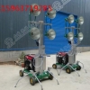 4.操作方便 通过无线遥控可在50米范围内分别控制每盏灯的开启和关闭,使用电动或手动气泵可快速控制伸缩气缸的升降。 5.适应场所 灯具下部气缸选用可调式三脚支架支撑,在不超过15°的斜坡、碎石路面及面积狭窄的地方能可靠固定。